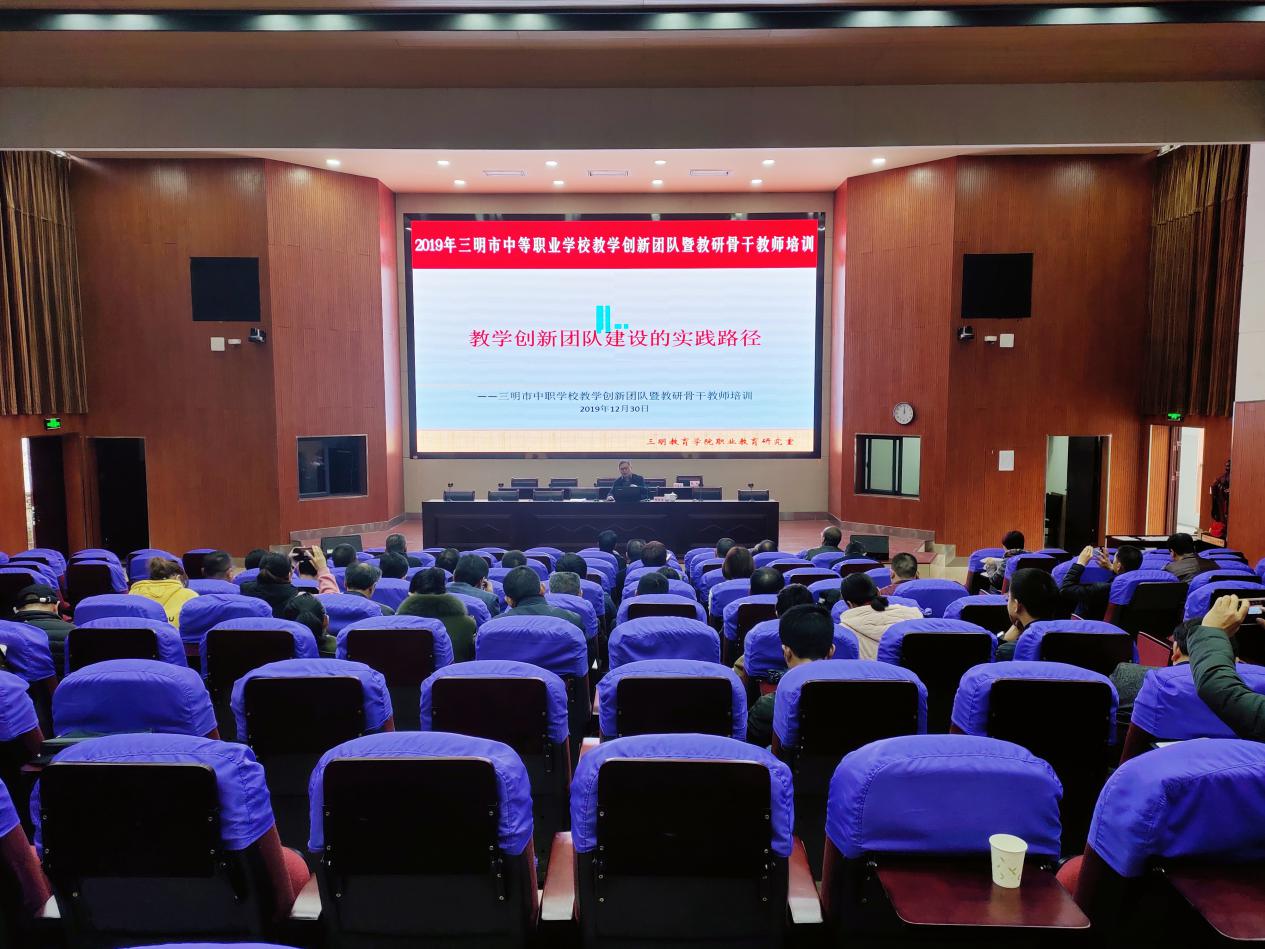 2019年12月30-31日,由三明教育学院主办的2019年三明市中等职业学校教学创新团队暨教研骨干教师培训活动在华体会(中国)报告厅举行。本次培训面向全市中职校教学分管副校长、教学教研工作负责人和主干专业建设负责人,参训人员达70余人。