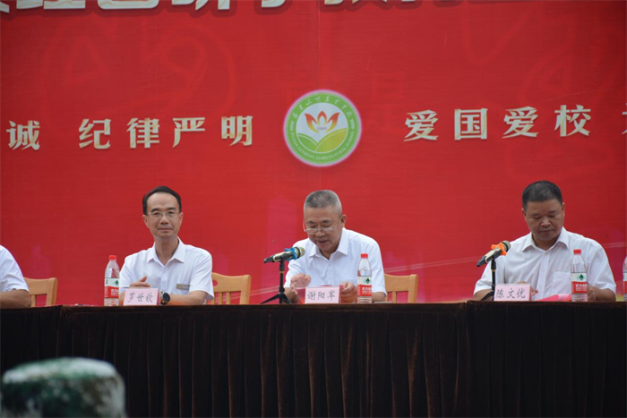 8月31日下午,夏令营闭营仪式正式开始,校党委书记、校长罗世钦,党委委员、副校长谢阳军,党委委员、纪委书记江文林,党委委员、副校长陈文优,党委委员、副校长胡安生,思政处主任林宏宇,团委书记官炳火,保卫处负责人陈柯龙出席闭营仪式。全体教官、带队老师及80名学生干部参加了闭营仪式,仪式由副校长陈文优主持。